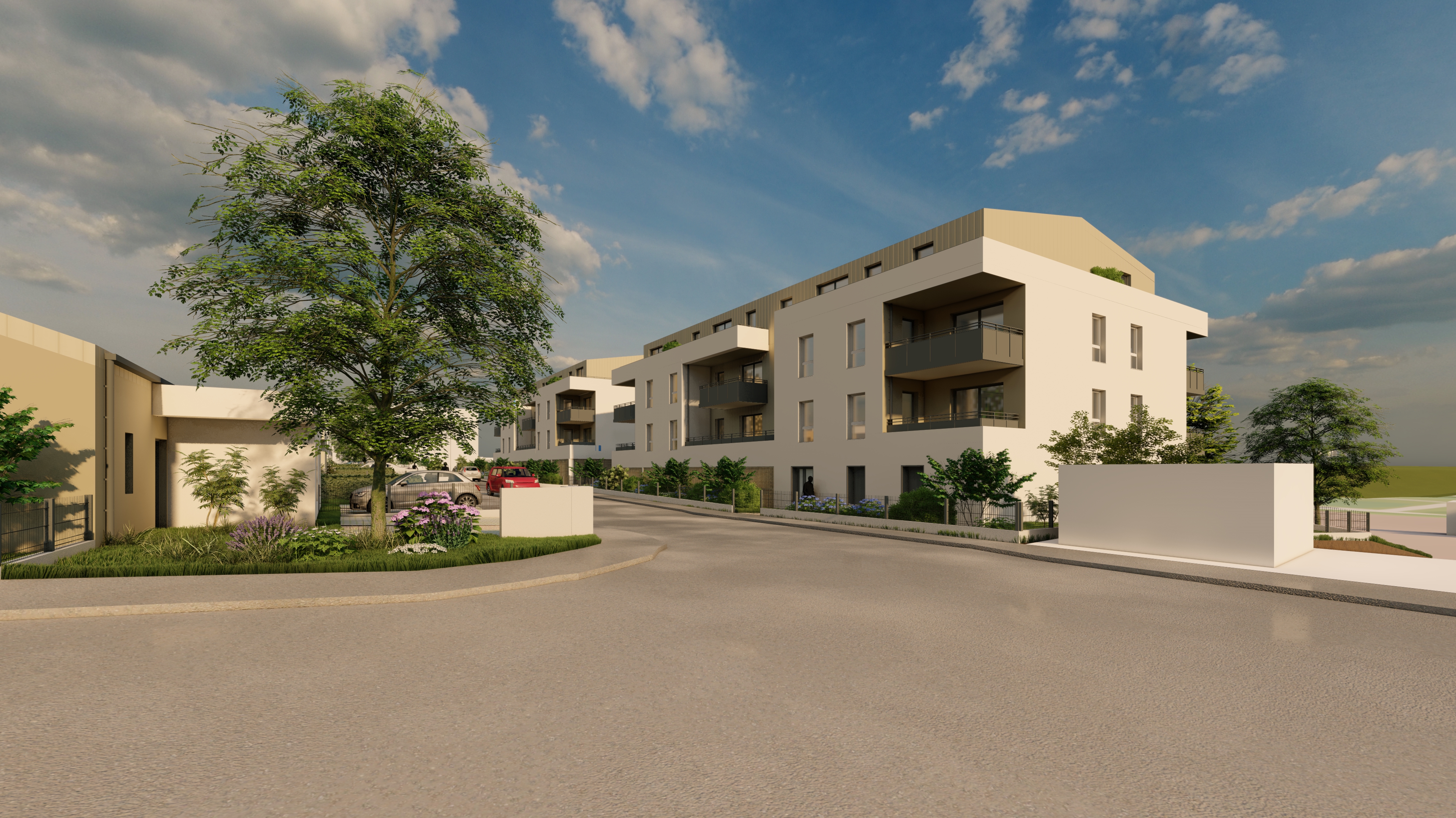 • 12 maisons individuelles de plain-pied de typologie T4 complètent l’opération, chacune disposant d’une terrasse et d’un jardin privatif.